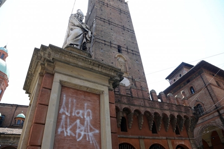 În noaptea de sâmbătă spre duminică, pe soclul statuii sfântului Petronius din centrul Bolognei, au fost scrise cu un spray de culoare albă cuvintele „Allah Akbar”.